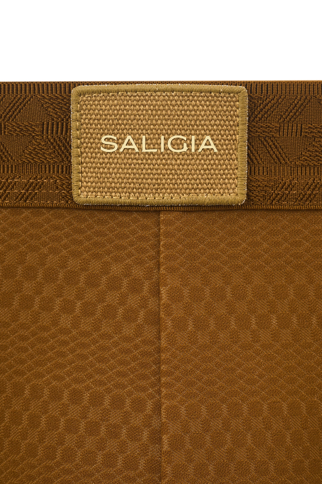 • Dimensional tribal geometric jacquard waistband